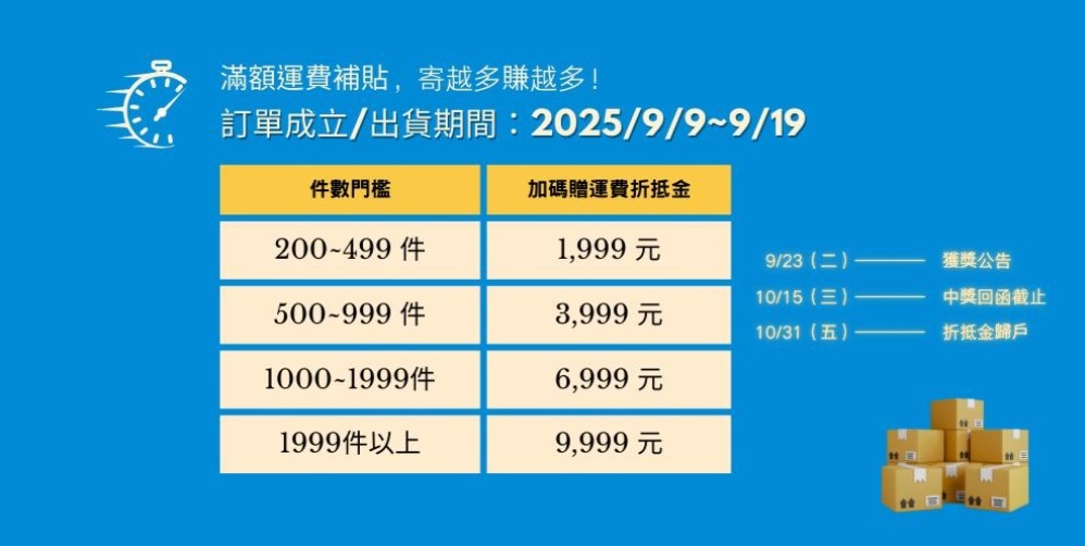 2025/9/9~9/19 衝件99:最高獲$9999運費折抵金
